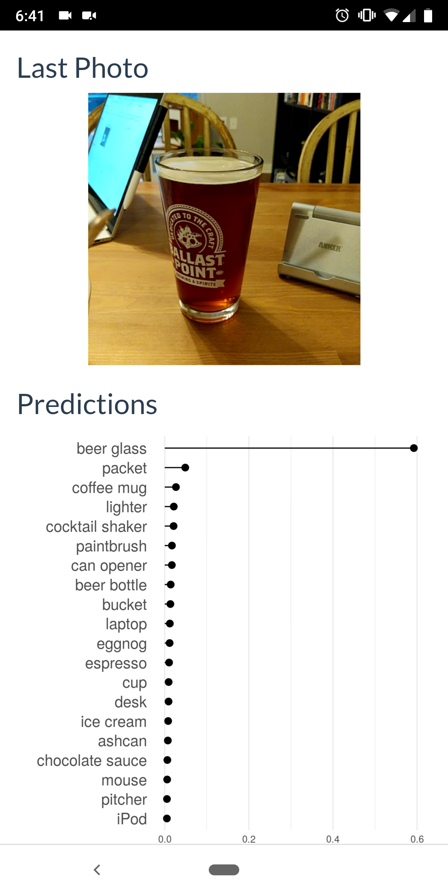 Taking a photo and just plotting it is… kind of lame. The real power of image input into shiny is, in my opinion, the easy interfacing with powerful machine learning libraries. To demonstrate this, let’s build an app that attempts to classify whatever is in the photo you just took.