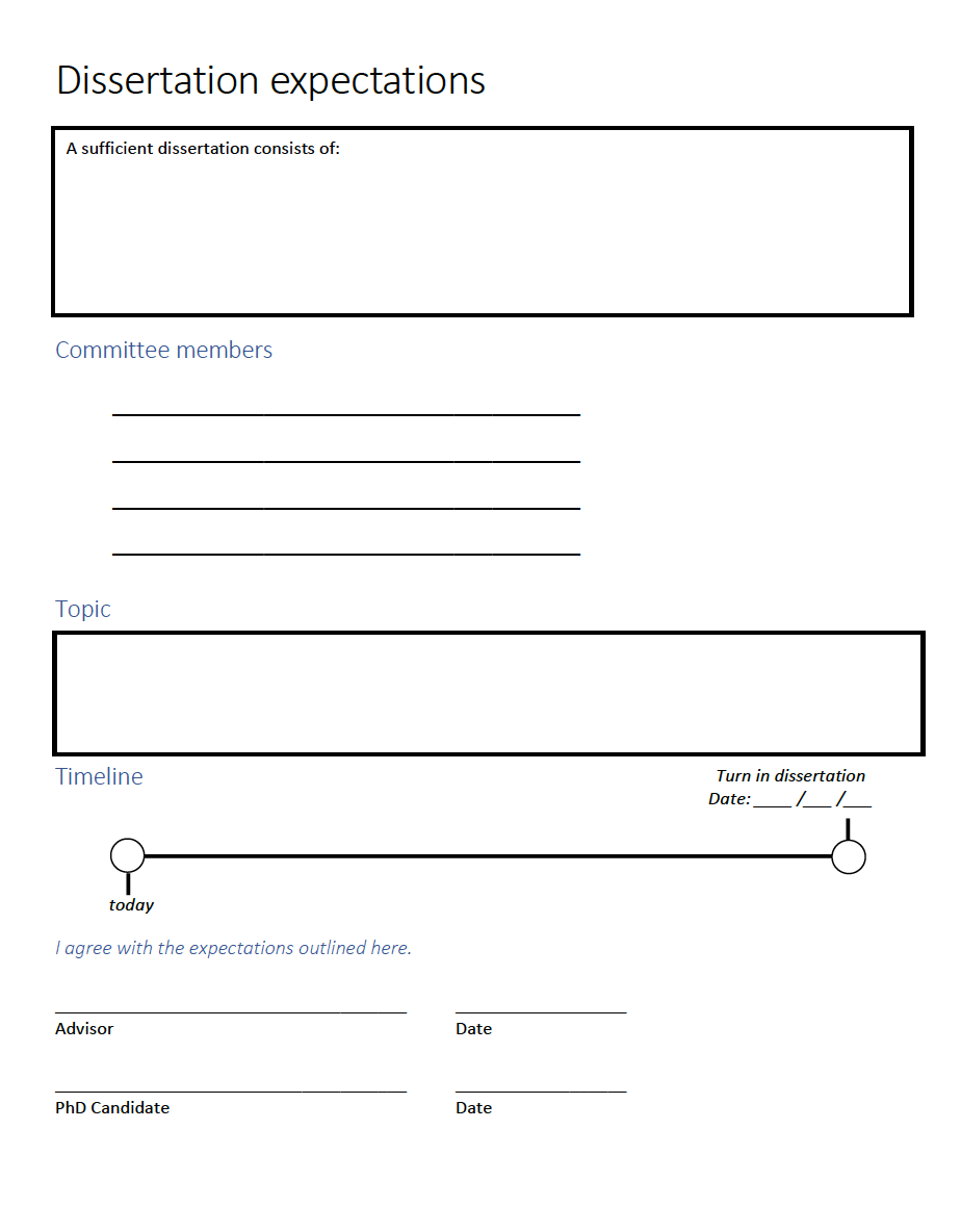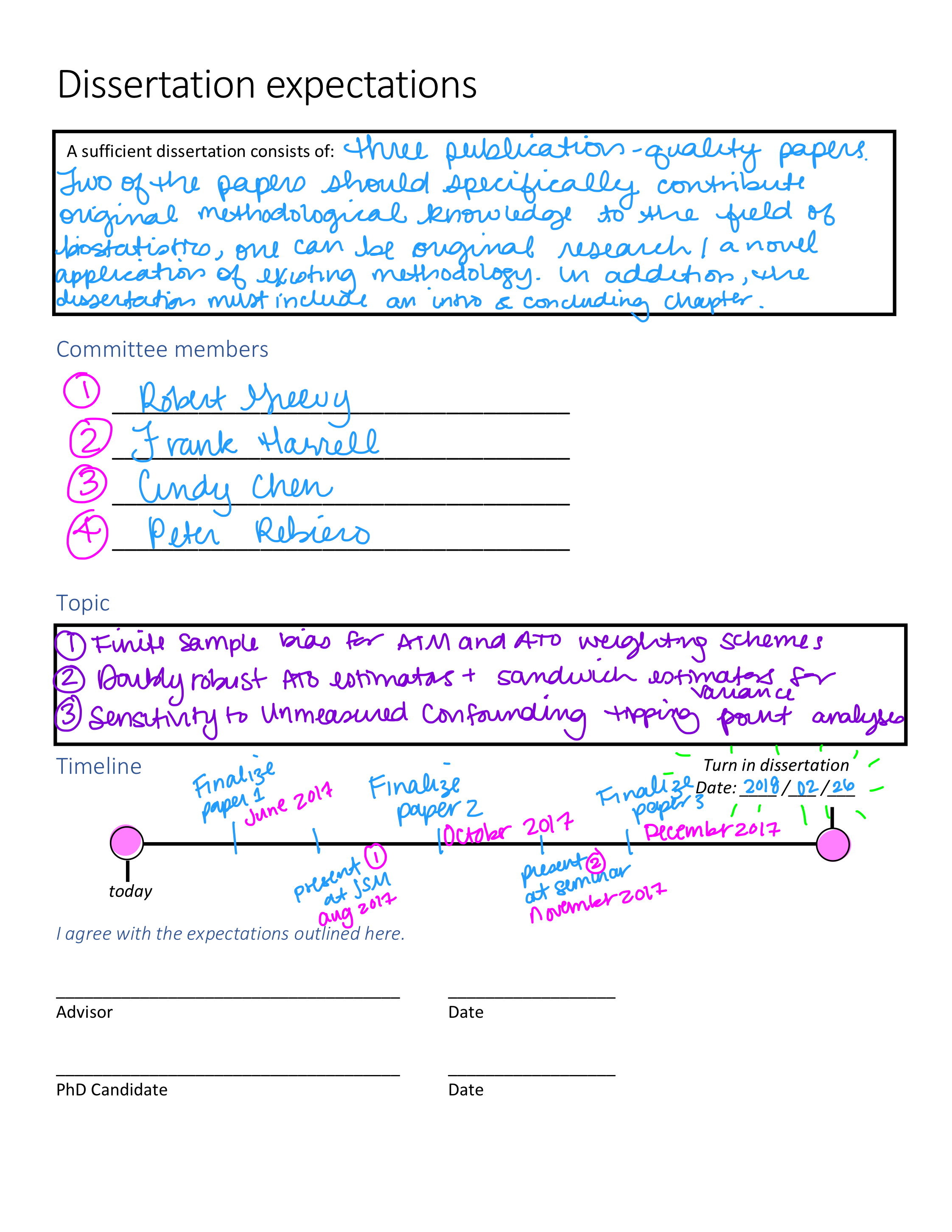 Note that this can be revised lots of times! My third dissertation paper ended up being on a completely different topic than what was originally discussed – I think this is totally normal!