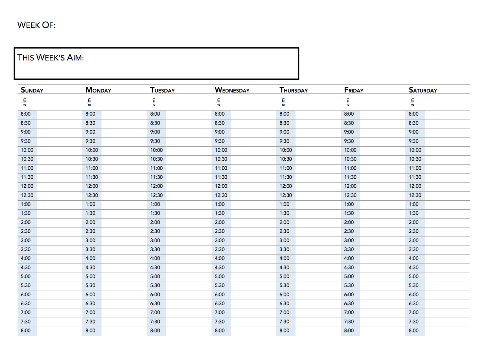 Now that you have a bit of a global map 🗺 for the overall course of your next year (or whatever timeline you’ve set), now we need to scale this down to the micro-level. I found that a weekly calendar worked best for this!