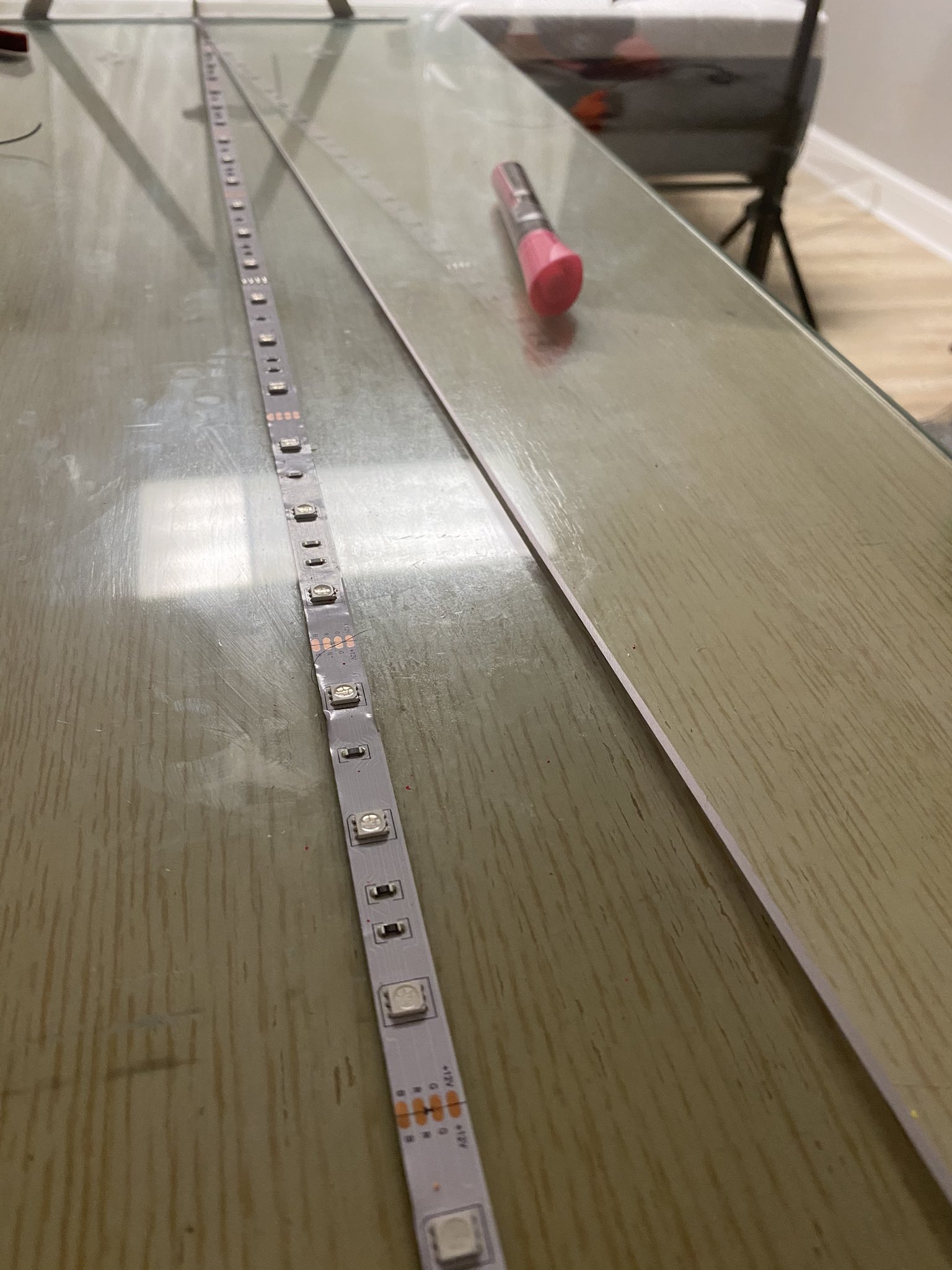 r emo::ji("bulb") stick 3ft of the LED strip lights on a table